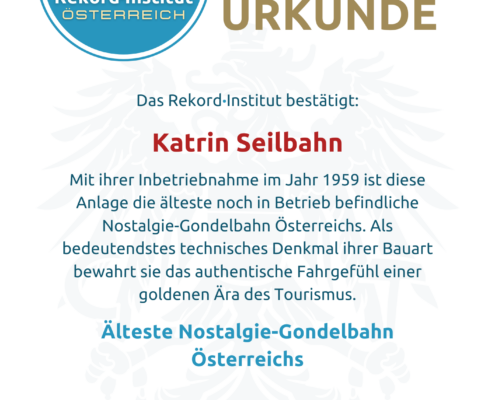 Während die Rax-Seilbahn als Pionier der Großkabinen-Pendelbahnen Geschichte schrieb, setzte die Katrin-Seilbahn in Bad Ischl Maßstäbe für das individuelle Schwebeerlebnis. Seit 1959 befördert sie Gäste in den charakteristischen 4er-Gondeln. Da sie die älteste noch in Betrieb befindliche Umlaufbahn dieser Bauart im Land ist, wird sie offiziell als die älteste Nostalgie-Gondelbahn Österreichs ausgezeichnet.