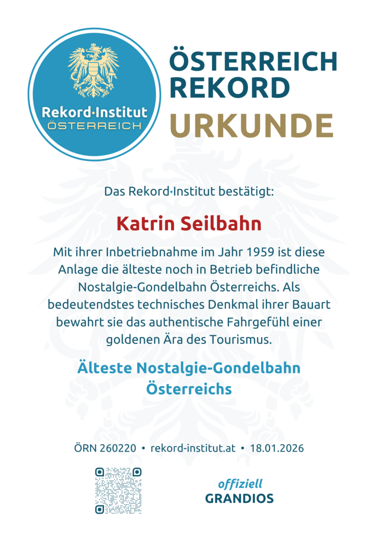 Der Rekord basiert auf dem Erhalt des originalen Fahrgefühls der Wirtschaftswunderjahre. Die Katrin ist das letzte bedeutende Beispiel für diese Bauform, die früher den gesamten Alpenraum prägte. Diese bewusste Bewahrung technischer Kulturgeschichte macht die Seilbahn zu einem emotionalen Denkmal des österreichischen Tourismus, das den Charme einer ganzen Ära konserviert.