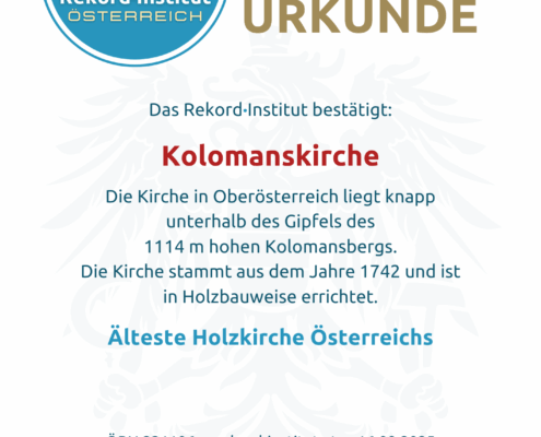 Die älteste Holzkirche Österreichs – anerkannt durch das Rekord-Institut ÖSTERREICH (RIO).