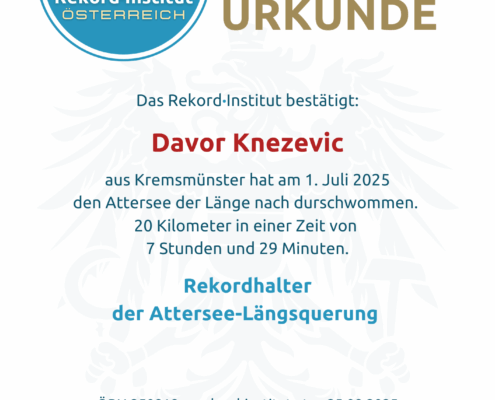 Attersee der Länge durchschwimmen – zertifiziert durch das Rekord-Institut ÖSTERREICH (RIO).