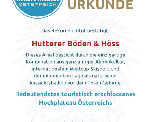 Hinterstoder hat mit den Hutterer Böden ein Juwel der Alpen erschlossen. Der Titel bedeutendstes touristisch erschlossenes Hochplateau Österreichs ehrt die visionäre Erschließung und die landschaftliche Einzigartigkeit dieses Areals. Damit sind die Hutterer Böden offiziell eine grandiose Besonderheit unserer Heimat und ein Vorzeigeprojekt des österreichischen Alpinismus.