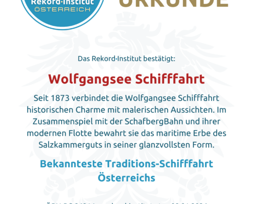 Der Rekord basiert auf der außergewöhnlichen Präsenz und Beständigkeit dieser Institution. Während die historischen Schiffe das maritime Erbe bewahren, sorgt die moderne Flotte für höchsten Komfort. Diese Symbiose macht die Schifffahrt am Wolfgangsee zur bedeutendsten ihrer Art auf heimischen Binnenseen und zu einer offiziell grandiosen Besonderheit des Landes.