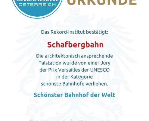 Der schönste Bahnhof der Welt – anerkannt durch das Rekord-Institut ÖSTERREICH (RIO).