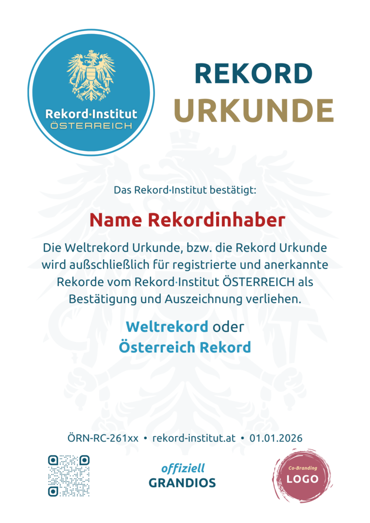 - Weltrekord Urkunde / Österreich Rekord Urkunde / Erlebnis Urkunde.