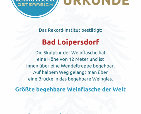 Die größte begehbare Weinflasche der Welt – anerkannt durch das Rekord-Institut ÖSTERREICH (RIO).