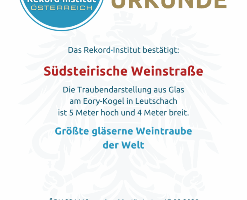 Die größte gläserne Weintraube der Welt – anerkannt durch das Rekord-Institut ÖSTERREICH (RIO).