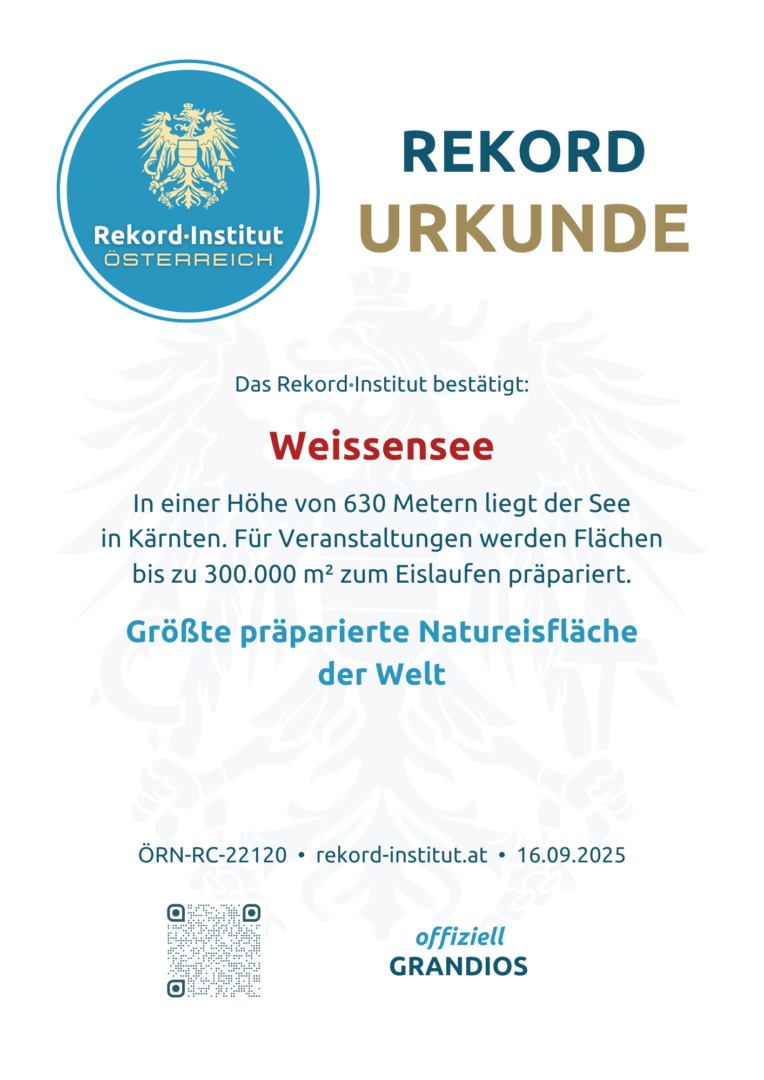 Der Weissensee ist ein spektakulärer Beweis für die Kraft der Natur, geformt durch die professionelle Hand des Menschen. Die Fähigkeit, jährlich die größte Natureisfläche der Welt zu schaffen und zu pflegen, ist eine logistische Meisterleistung und macht diesen Ort zu einem einzigartigen Winter-Sehnsuchtsort. Eine wahrhaft offiziell grandiose Besonderheit Österreichs.