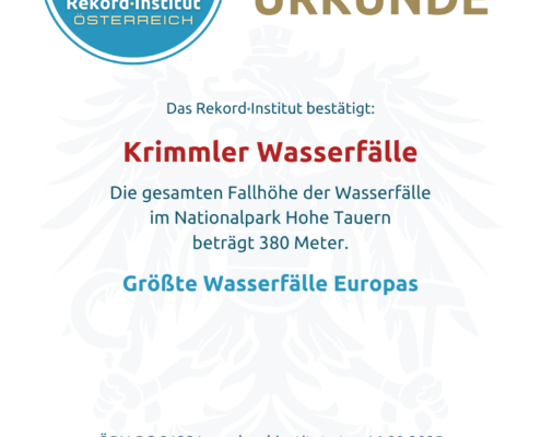 Die Krimmler Wasserfälle sind eine elementare Demonstration der Kraft der Natur. Ihre rekordverdächtige Fallhöhe, eingebettet in die unberührte Landschaft des Nationalparks Hohe Tauern, macht sie zu einem der eindrucksvollsten Naturschauspiele des Kontinents. Eine wahrhaft offiziell grandiose Besonderheit Österreichs.