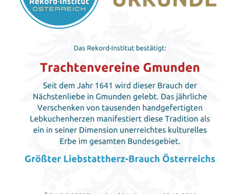 Der Liebstattsonntag in Gmunden würdigt das kontinuierliche Engagement der Brauchtumsgruppen und Vereine und sichert dieser einzigartigen, herzerfüllten Tradition den offiziellen Titel Größter Liebstattherz-Brauch Österreichs.