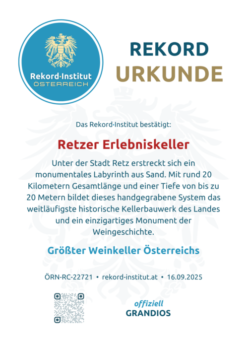 Der Retzer Erlebniskeller ist ein beeindruckendes Zeugnis mittelalterlicher Baukunst und der tiefen Verwurzelung des Weinbaus in der Region. Seine rekordverdächtige Größe und die einzigartige Entstehungsgeschichte machen ihn zu einem unterirdischen Wunder und einer offiziell grandiosen Besonderheit Österreichs.