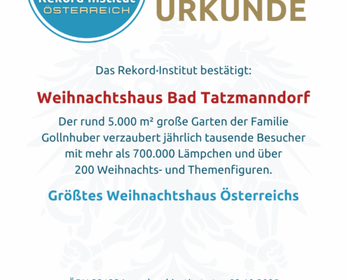 Das größte Weihnachtshaus Österreichs – anerkannt durch das Rekord-Institut ÖSTERREICH (RIO).