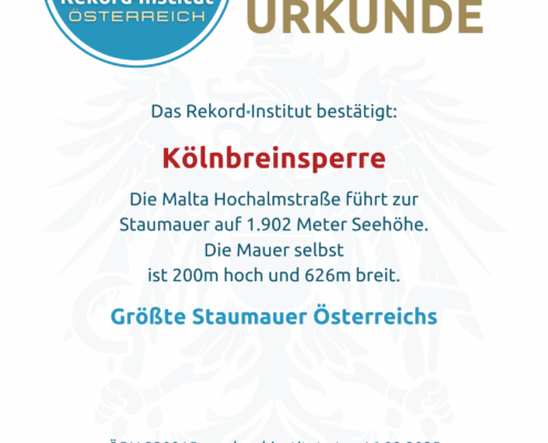 Die höchste Staumauer Österreichs – anerkannt durch das Rekord-Institut ÖSTERREICH (RIO).
