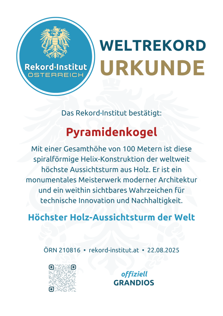 Der Pyramidenkogel ist eine geniale Verbindung aus visionärer Architektur und atemberaubendem Naturerlebnis. Er ist weit mehr als ein technischer Weltrekord; er ist ein Wahrzeichen für die Innovationskraft und den Mut zu neuen Wegen. Damit ist dieser Turm offiziell eine grandiose Besonderheit von Weltrang.