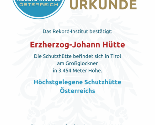 Die höchstgelegene Schutzhütte Österreichs – anerkannt durch das Rekord-Institut ÖSTERREICH (RIO).