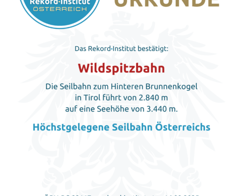 Die Wildspitzbahn ist eine technische Meisterleistung der Superlative. Der Titel „Höchstgelegene Seilbahn Österreichs“ ehrt den Mut und das Ingenieurswissen, das für den Bau in dieser extremen Höhenlage nötig war. Damit ist die Wildspitzbahn offiziell eine grandiose Besonderheit und der höchste Punkt unserer Heimat.