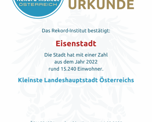 Die kleinste Landeshauptstadt Österreichs – anerkannt durch das Rekord-Institut ÖSTERREICH (RIO).