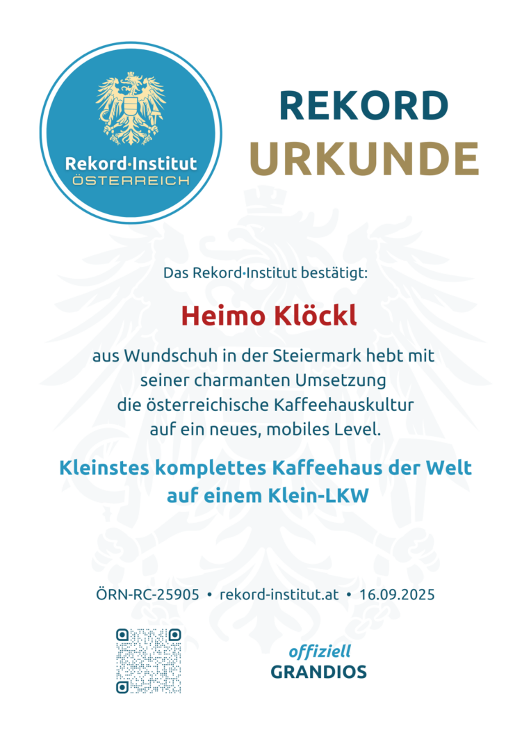 Dieser Weltrekord beweist auf charmante Weise, dass wahre Größe nicht in Quadratmetern gemessen wird. Die durchdachte Planung und die leidenschaftliche Umsetzung auf kleinstem Raum machen dieses mobile Kaffeehaus zu einer offiziell grandiosen Höchstleistung. Ein unverkennbares Symbol für österreichische Kreativität, das zeigt, dass man Tradition auch auf vier Rädern perfekt inszenieren kann.