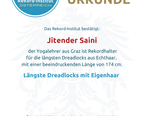 Hinter diesem außergewöhnlichen Rekord steckt ein erfahrener Yogalehrer, der in seinem Grazer Institut Menschen auf dem Weg zu innerer Ausgeglichenheit begleitet. Für Jitender Saini sind seine Haare untrennbar mit seinem spirituellen Weg verbunden. Sie spiegeln die Ruhe und die Ausdauer wider, die er auch in seiner täglichen Praxis lehrt. Es ist die faszinierende Verbindung von körperlicher Präsenz und geistiger Stärke, die diesen Rekord so besonders macht – hier wird Individualität zur gelebten Meisterschaft.