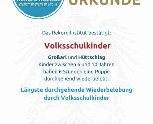 Längste durchgehende Wiederbelebung (Reanimation) durch Volksschulkinder – zertifiziert durch das Rekord-Institut ÖSTERREICH (RIO).