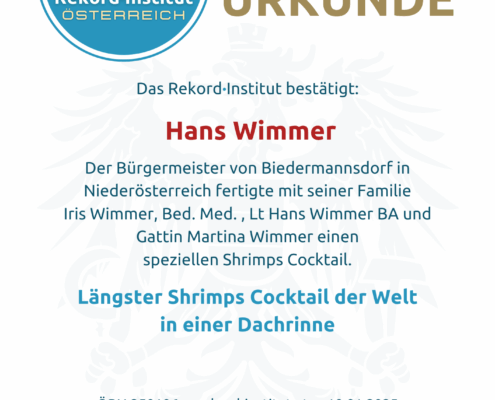 Der längste Dachrinnen Shrimps Cocktail der Welt – zertifiziert durch das Rekord-Institut ÖSTERREICH (RIO).