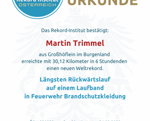 Der längste Rückwärtslauf auf einem Laufband in Feuerwehr Brandschutzkleidung – zertifiziert durch das Rekord-Institut ÖSTERREICH (RIO).
