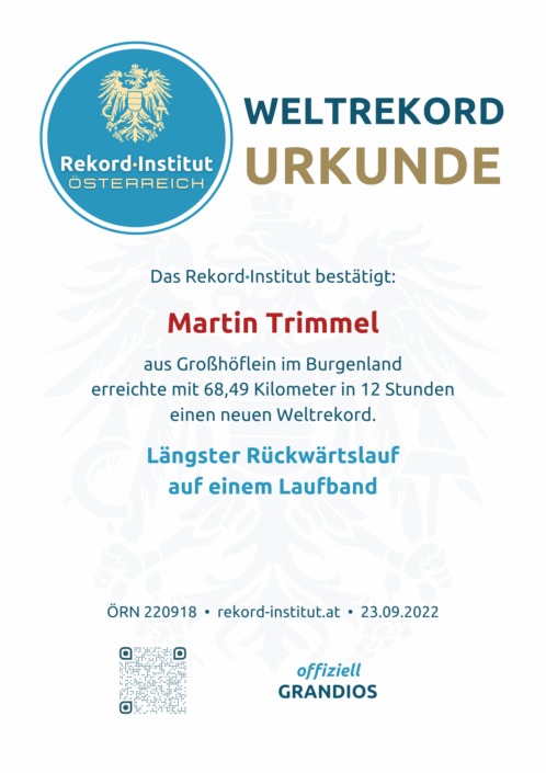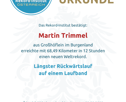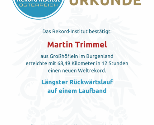 Der burgenländische Extremsportler Martin Trimmel hat einmal mehr bewiesen, dass er Herausforderungen aus einer anderen Perspektive angeht. Am 3. September 2022 stellte der Ultraläufer aus Großhöflein einen neuen, schier unglaublichen Weltrekord auf: den längsten Rückwärtslauf auf einem Laufband innerhalb von 12 Stunden.