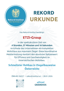 ÖRN-RC-26227 – Schnellster Rohbau in Ziegelbauweise Österreichs © Rekord·Institut ÖSTERREICH