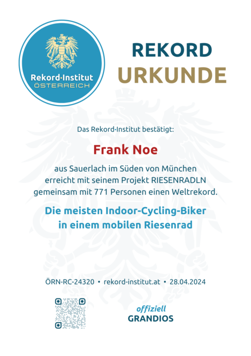 Das Riesenradln in München ist eine geniale Fusion aus Extremsport und Community-Event. Der Titel ehrt die perfekte Organisation und den unbändigen Willen, ein Zeichen für den guten Zweck zu setzen. Damit ist diese Leistung offiziell eine grandiose Besonderheit der internationalen Sportgeschichte.