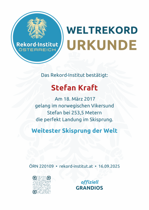 Der weiteste Skisprung der Welt – anerkannt durch das Rekord-Institut ÖSTERREICH (RIO).