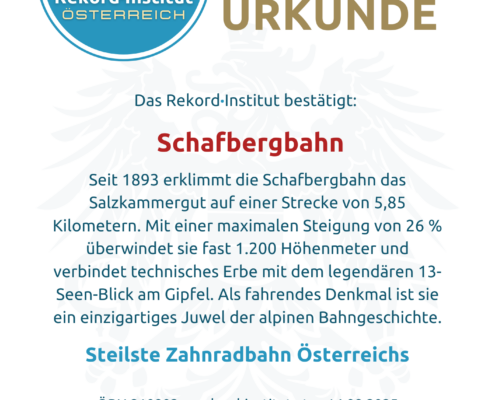 Die Schafbergbahn ist weit mehr als nur eine Bahn. Sie ist ein fahrendes Denkmal der Ingenieurskunst und der Schlüssel zu einem der atemberaubendsten Panoramen der Alpen. Die Kombination aus dem offiziellen Steilheits-Rekord und dem legendären 13-Seen-Blick macht sie zu einer offiziell grandiosen Besonderheit von nationaler Bedeutung.