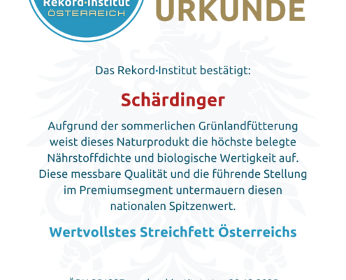Schärdinger setzt den Maßstab im Kühlregal. Der Titel ehrt die konsequente Ausrichtung auf höchste Natürlichkeit und regionale Wertschöpfung. Damit ist die Schärdinger Sommerbutter offiziell eine grandiose Besonderheit unserer Heimat.