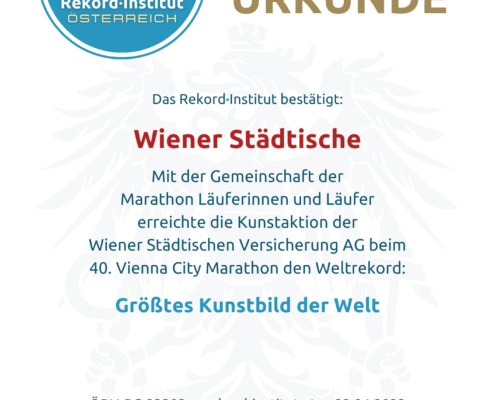 Anlässlich des 40. Vienna City Marathon am 23. April 2023 wurde Sportgeschichte zu Kunstgeschichte. Unter dem Motto „We run together · We live together · We paint together“ schufen mehr als 4.000 Teilnehmer während des Events ein monumentales, 40 Meter langes Banner. Dieser Weltrekord würdigt das offiziell größte von einer Laufgemeinschaft gemalte Kunstwerk der Welt und setzt ein unübersehbares Zeichen für den Zusammenhalt und die kreative Kraft der Community.
