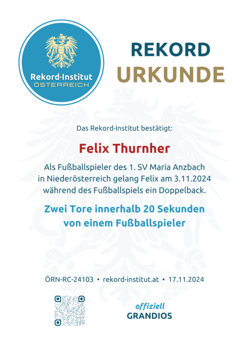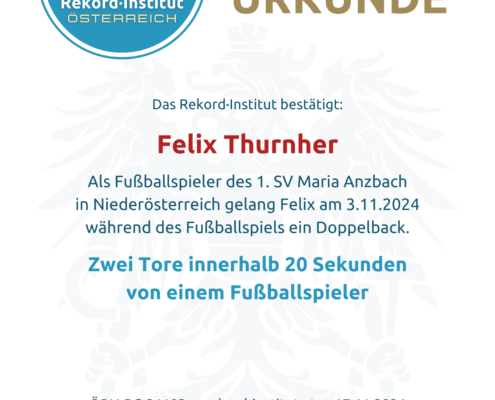 Am 3. November 2024 wurde im niederösterreichischen Amateurfußball Sportgeschichte geschrieben. Im Spiel gegen Bischofsstetten erzielte Felix Thurnher vom 1. SV Maria Anzbach einen unglaublichen Doppelpack, der ihm einen Eintrag in die Rekordbücher sicherte.
